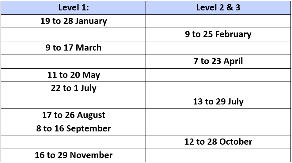 Courses consist of 15 modules – 2-3 modules per day’. 15 minutes